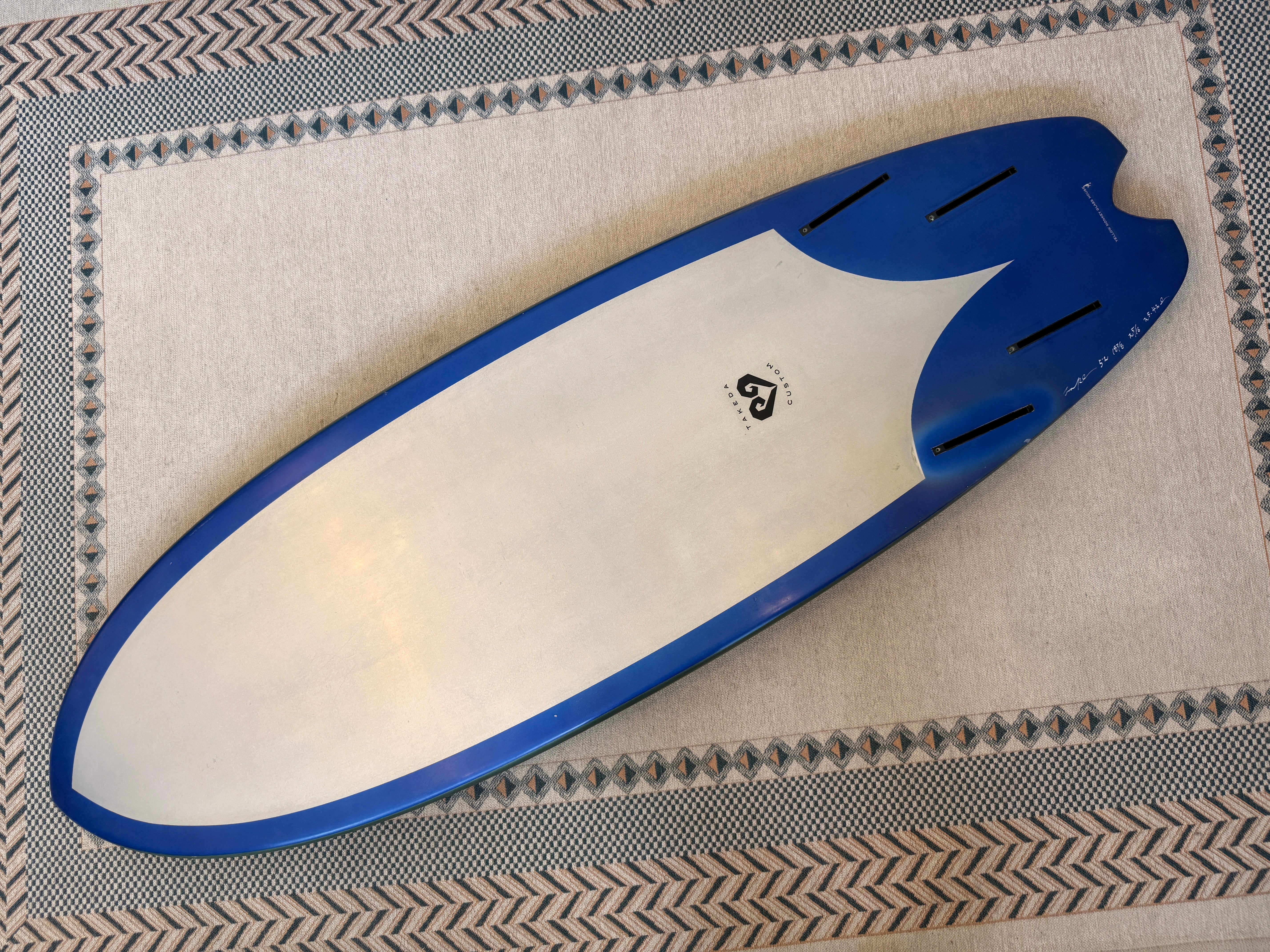 TAKEDA CUSTOMSのシェイパーYoshiro Takeda本人が、体重55kg前後の時期に使用していたパーソナルボードです。
