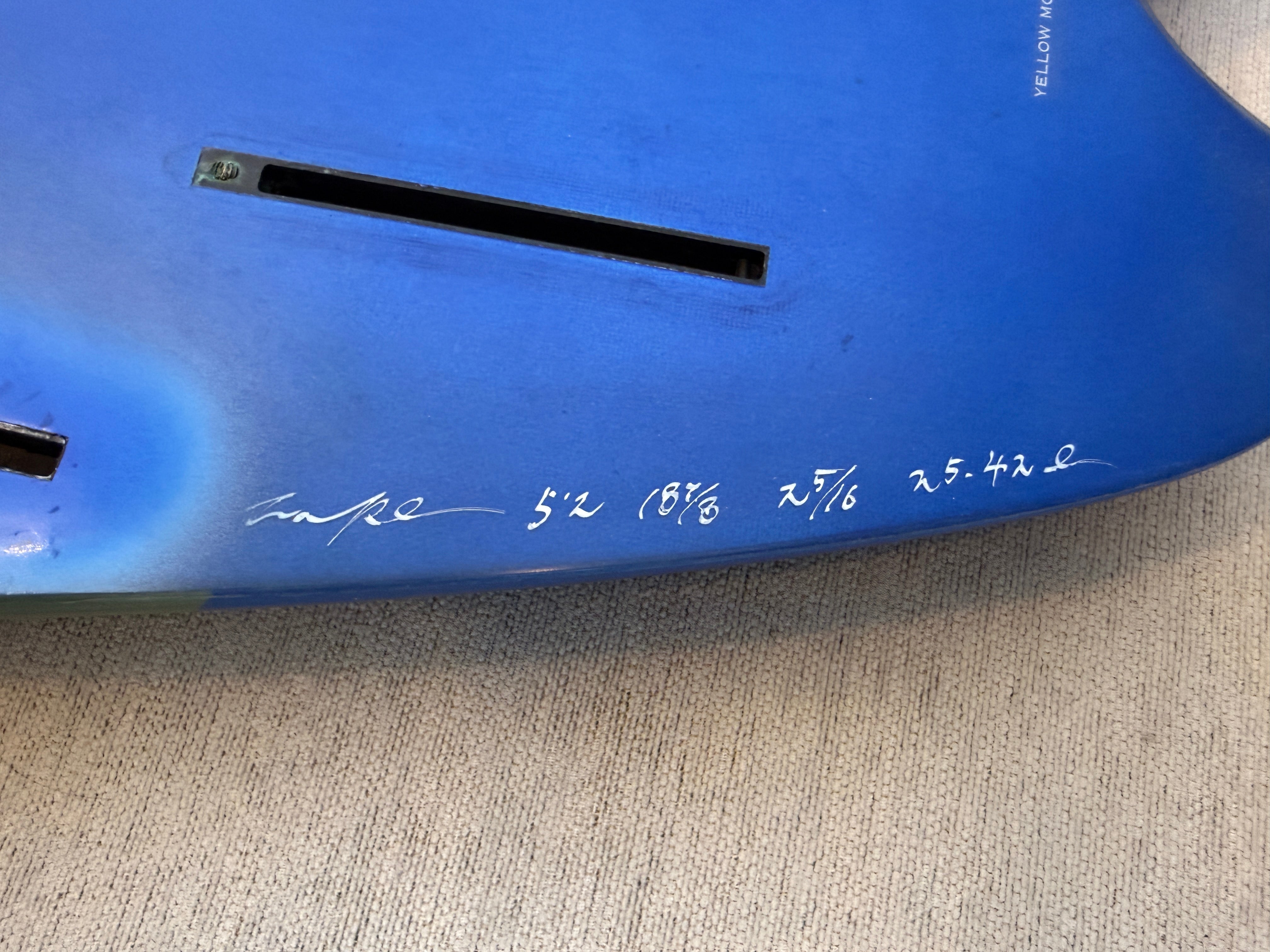 5'2"という短めのサイズは、55kgのYoshiro本人が自分用に削ったディメンション。25.42Lのボリュームは軽量サーファーにとって十分な浮力を持ちながら、コンパクトなサイズから来る取り回しの良さが小波でのアクション性を高めます。