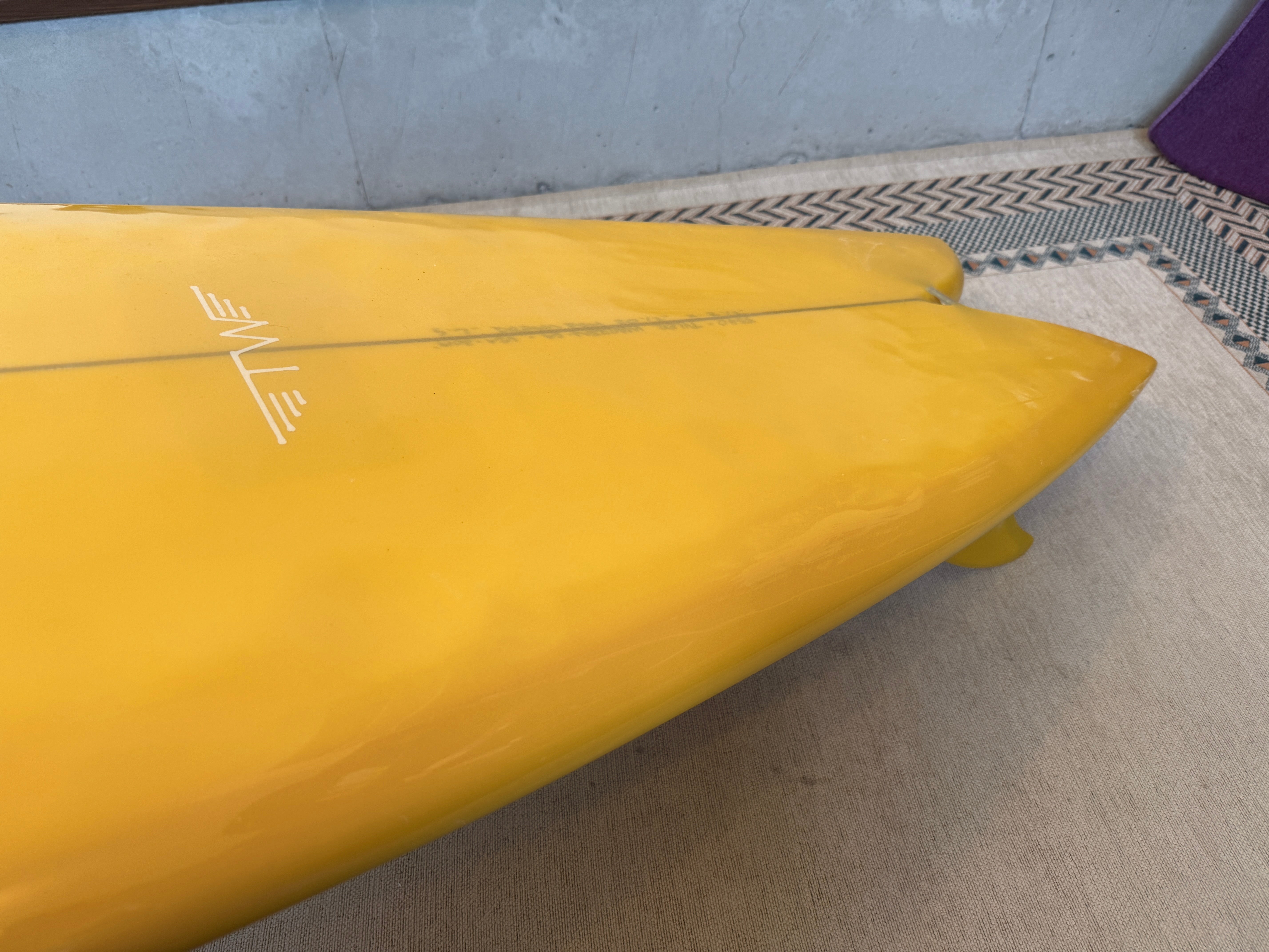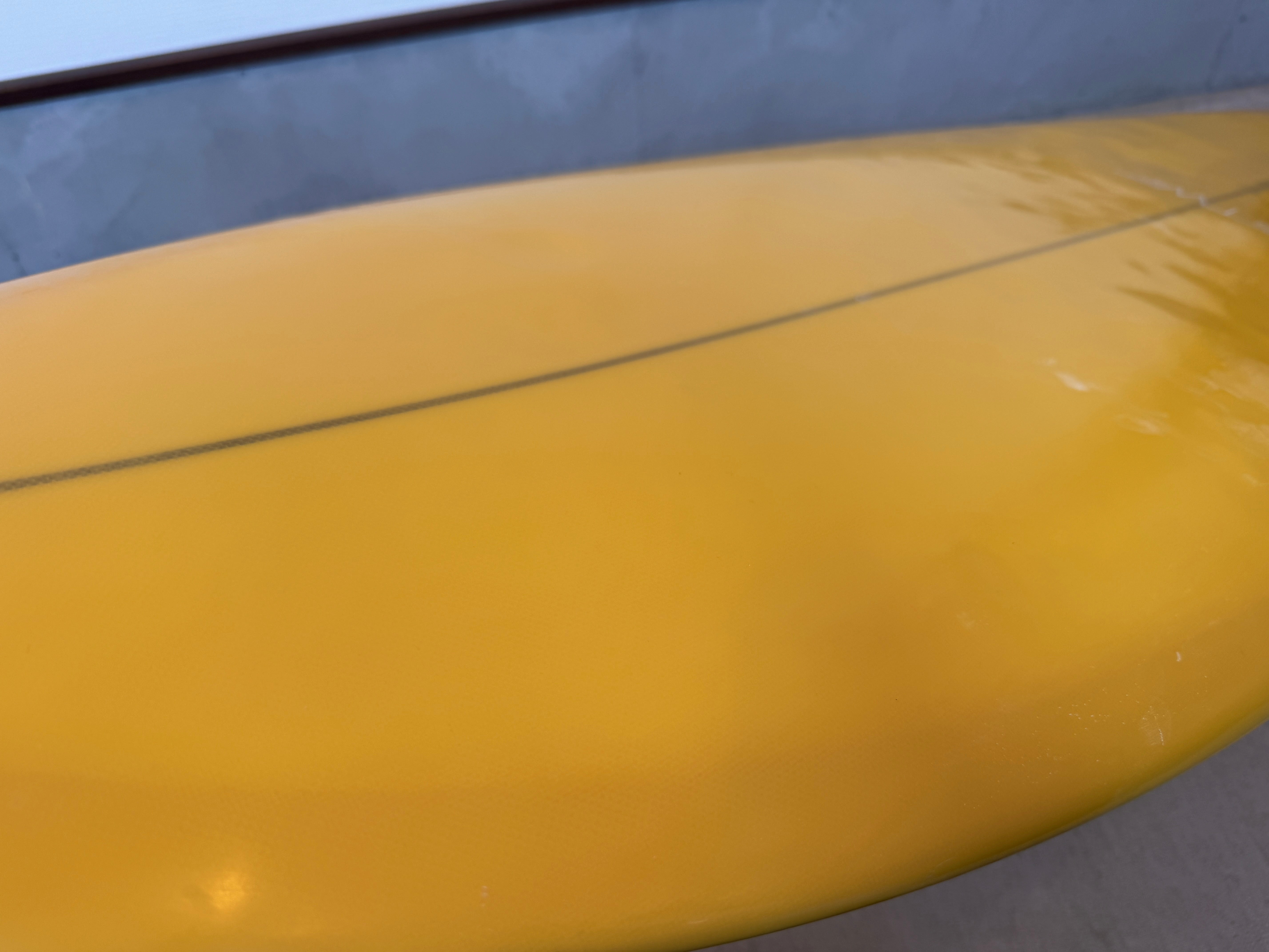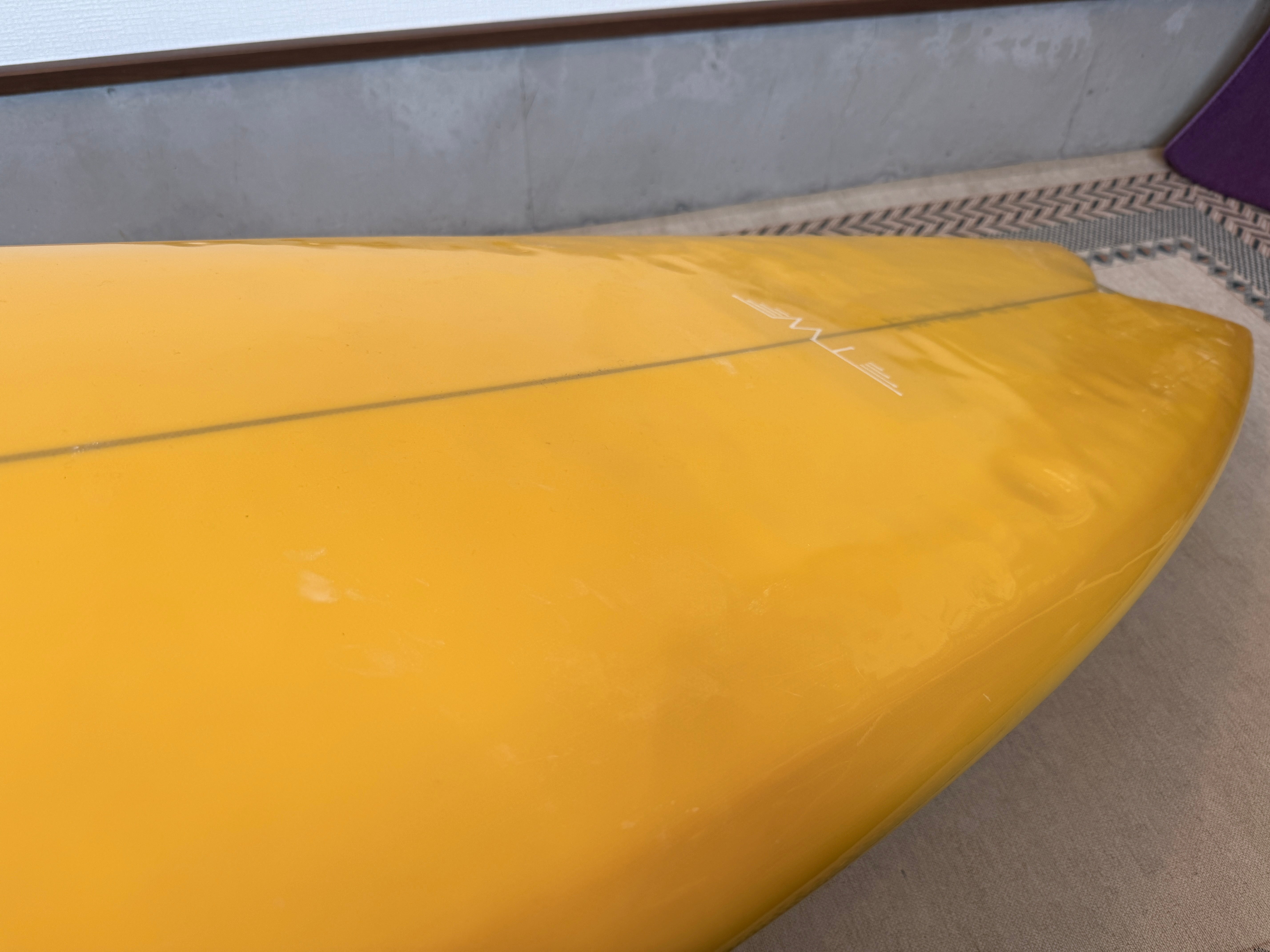 イエローのティントが美しい一本。オンフィンにまでティントが入っており、ボードとフィンが一体となった統一感のあるルックスに仕上がっています。