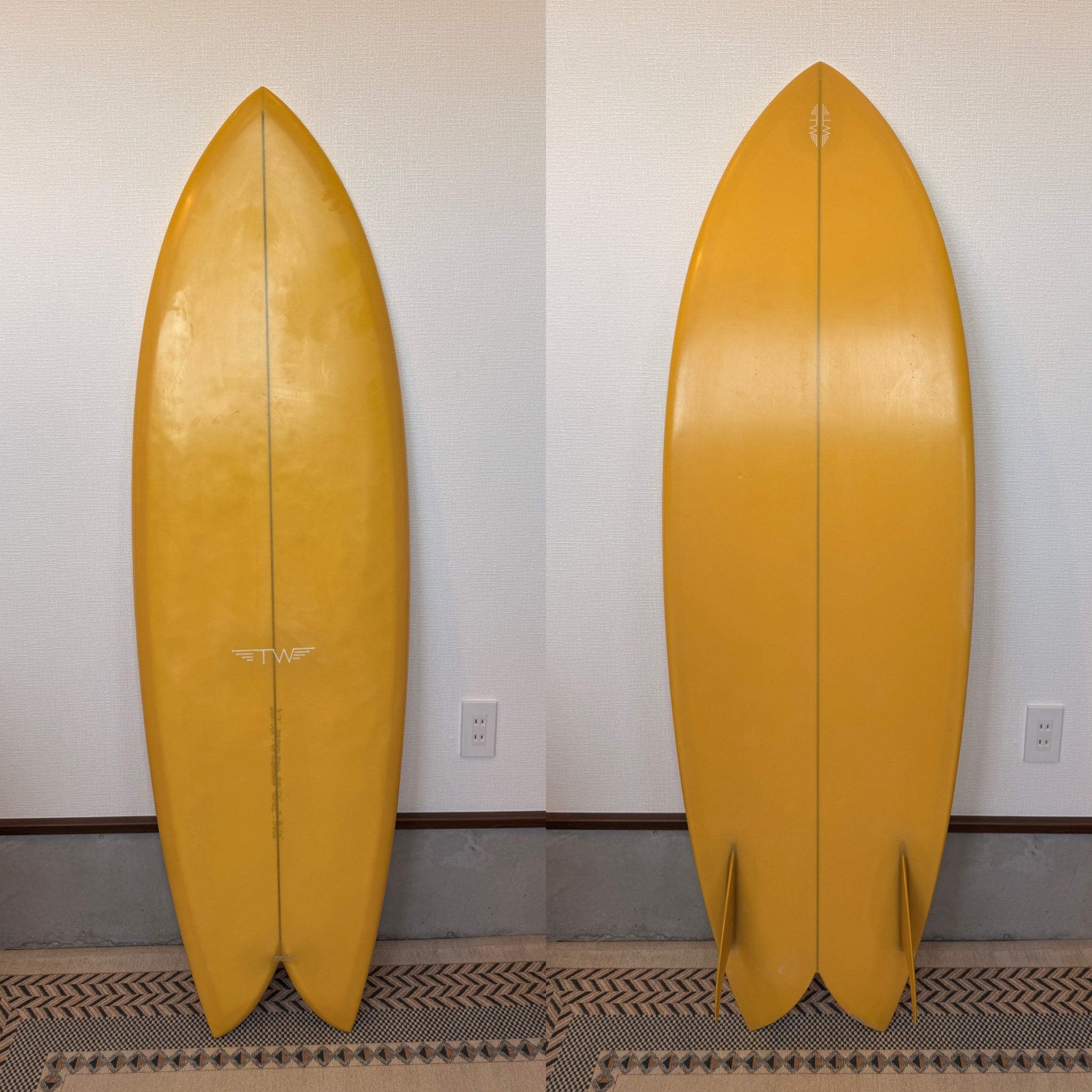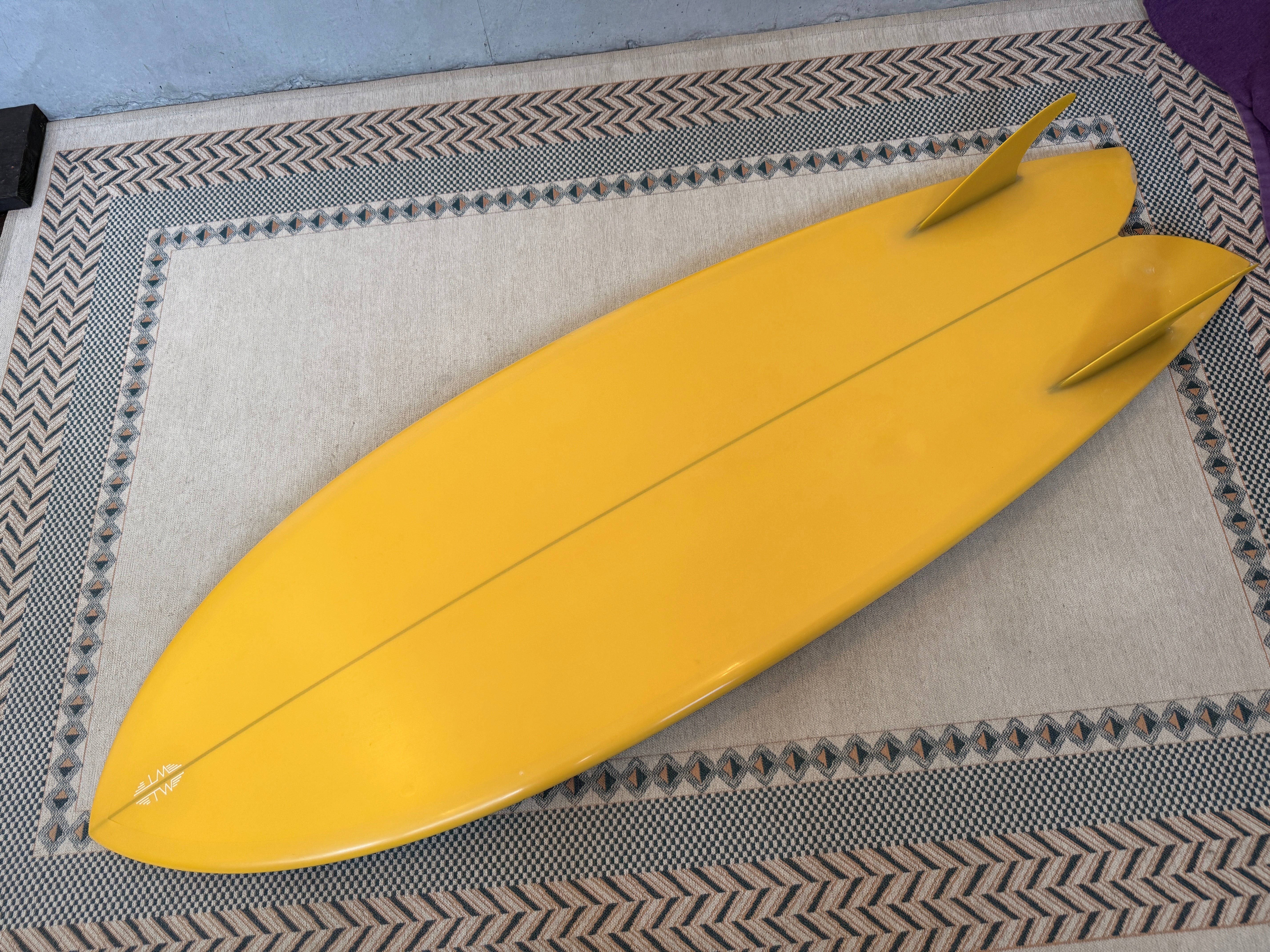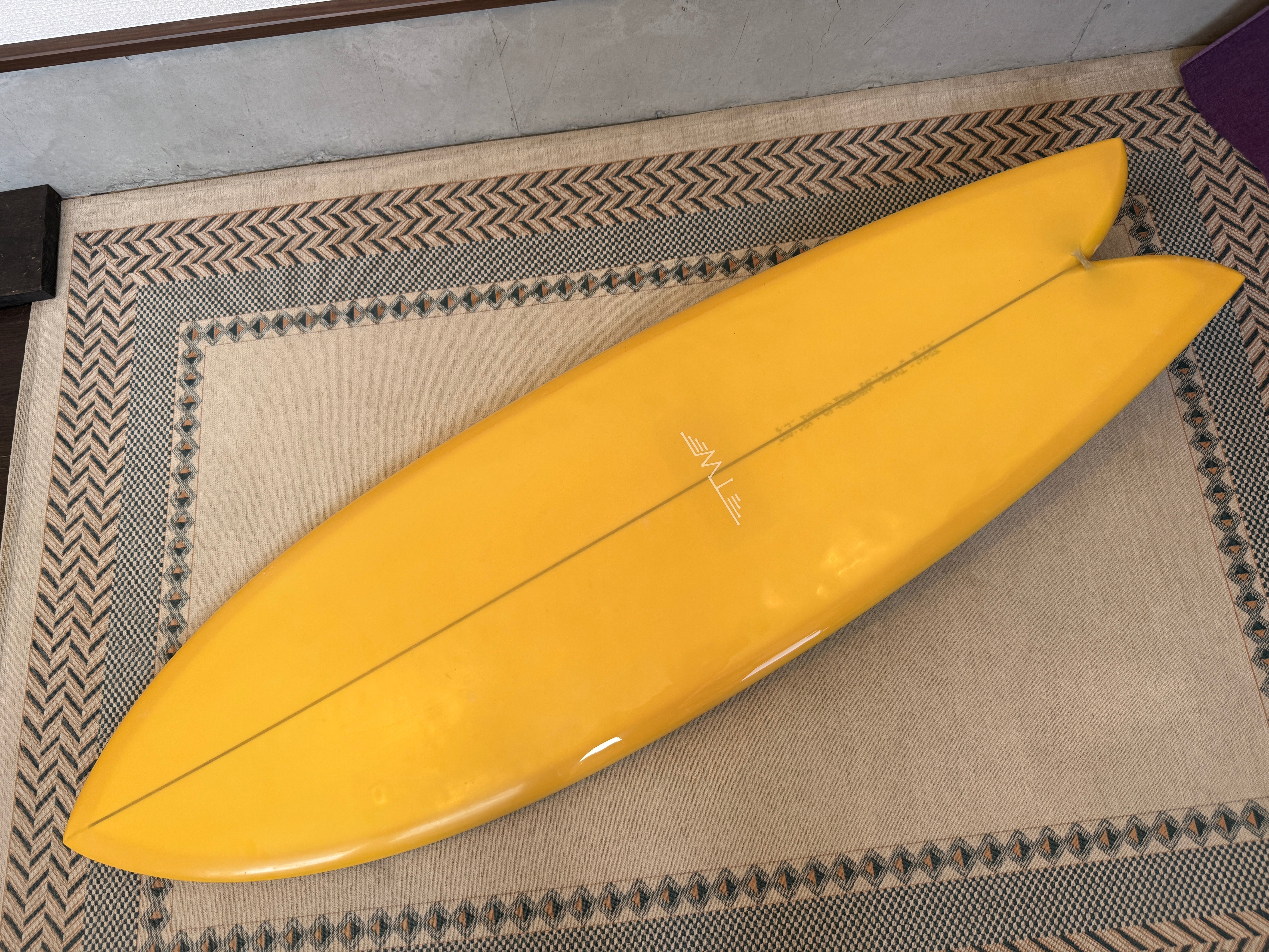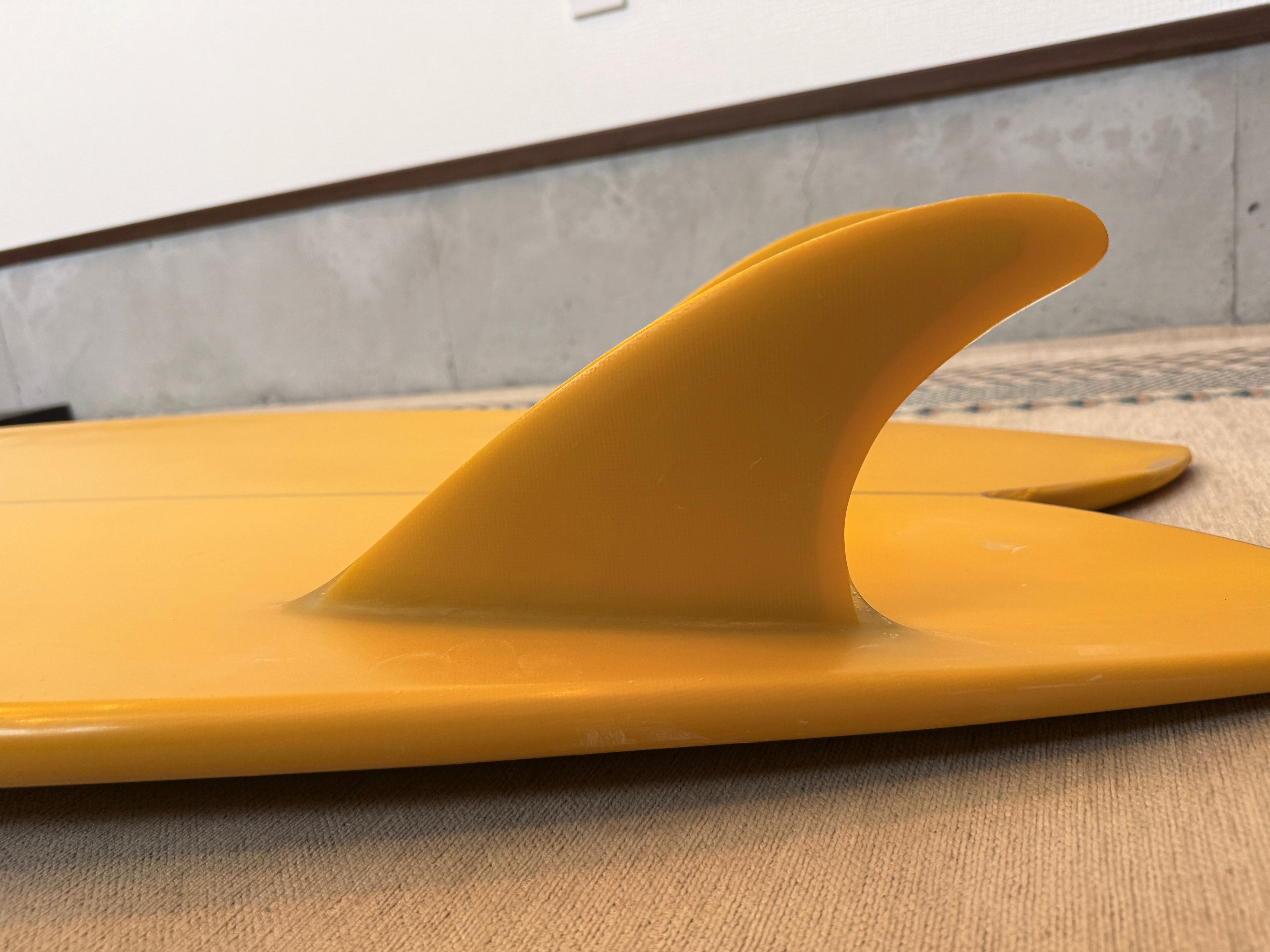 イエローのティントが美しい一本。オンフィンにまでティントが入っており、ボードとフィンが一体となった統一感のあるルックスに仕上がっています。